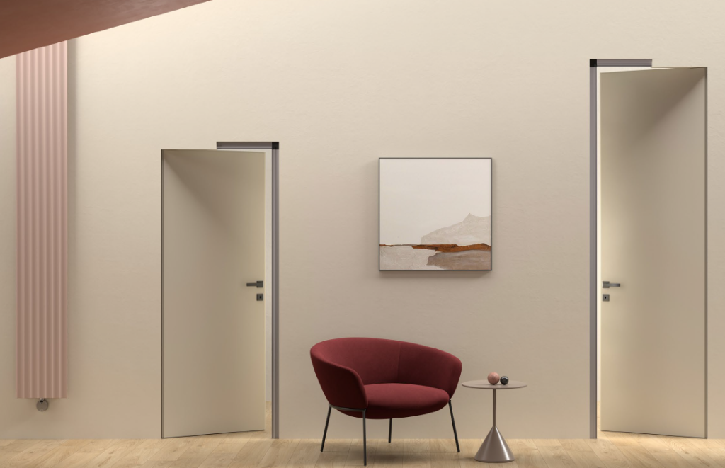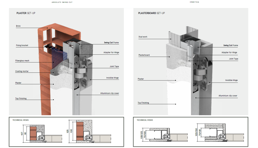 Absolute Swing Cut von Ermetika ist ein rahmenloser Türrahmen, der minimalistische Eleganz mit außergewöhnlicher Funktionalität kombiniert.